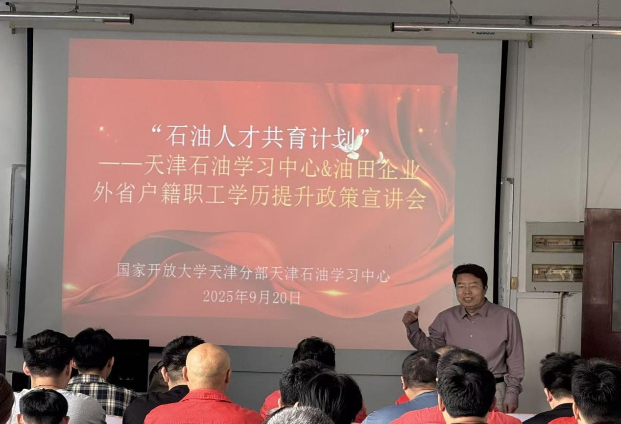 国家开放大学天津分部天津石油学习中心立足服务石油行业发展使命,联合中国石油渤海钻探公司、大港油田等龙头企业,启动“石油人才共育计划”。此次召开的油田企业外地职工学历提升政策宣讲会,正是计划落地实施的重要起点,旨在通过政策解读、方案推介,打通异地职工学历提升 “最后一公里”,为石油行业高质量发展注入人才动能。